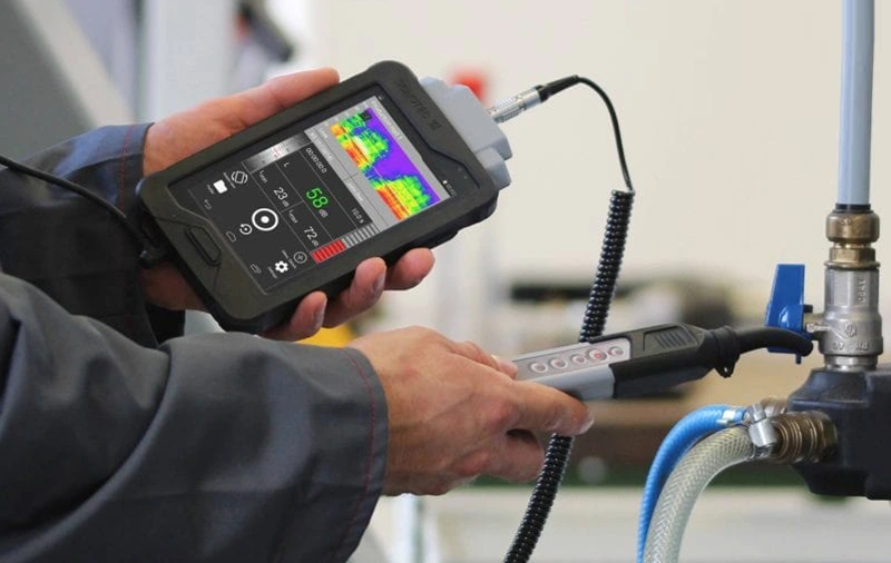 - جهاز الألتراسونيك: يساعد في كشف تسربات المياه في الأنابيب والتجهيزات عن طريق تحليل الأصوات التي لا يمكن سماعها بالذان.