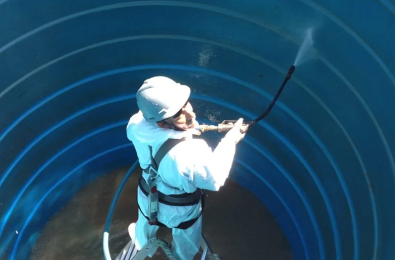 4. الشطف الداخلي: بعد الانتهاء من التنظيف، يتم فتح مصادر المياه لشطف الهيكل الداخلي للخزان ومن ثم، يتم تصفية المياه مرة أخرى للتخلص من الرواسب المتبقية.